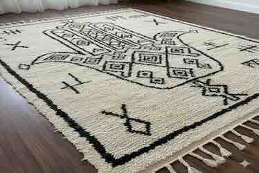 Moroccan Berber women weave Khamsa symbols into tribal rugs using ancient geometric patterns. These rugs, particularly from the Beni Ourain and Azilal tribes, feature abstract hand motifs in natural wool colors (cream, brown, black). Each rug is unique, reflecting the weaver's personal style and protective intentions.