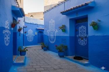 The coastal town of Essaouira is famous for its blue-painted doors and walls adorned with hand symbols. The blue color (traditionally associated with warding off the evil eye) combined with the Khamsa creates a double layer of protection. This aesthetic has become synonymous with Moroccan design.