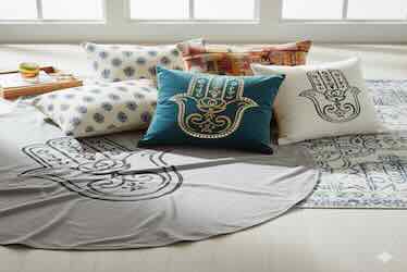 Today, the Khamsa appears screen-printed on everything from throw pillows to beach towels. Companies like Anthropologie, Urban Outfitters, and independent Etsy sellers mass-produce Hamsa textiles targeting Western bohemian aesthetics. While commercially successful, these often lack the cultural context of traditional pieces.