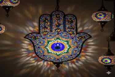 Turkish artisans create stunning mosaic lamps with Khamsa designs using colored glass fragments. When illuminated, these lamps cast intricate patterns of light and shadow. The tradition combines Byzantine mosaic techniques with Ottoman aesthetics.