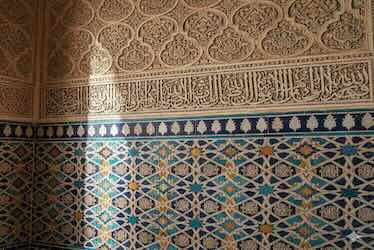 The Nasrid Palace in Granada contains numerous Khamsa motifs in its tile work and stucco decoration. The hand appears in geometric Islamic patterns, often integrated with arabesque designs and Quranic calligraphy. These representations are subtle—embedded within the overall design rather than standing alone.